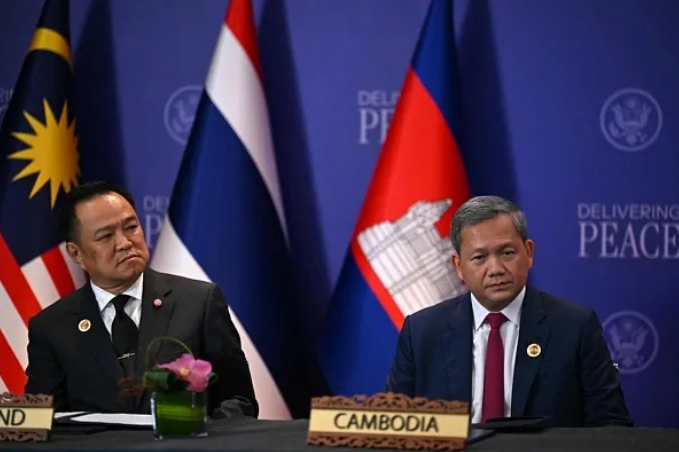 当天,正在马来西亚吉隆坡出席第47届东盟峰会的泰国总理阿努廷与柬埔寨首相洪玛奈共同签署声明。声明包括泰柬和平四项协议:撤除重型武器、清除地雷、打击诈骗集团、共同管理边境。