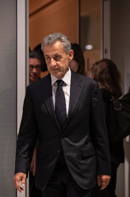 9月25日,在法国巴黎,法国前总统萨科齐在庭审后离开。