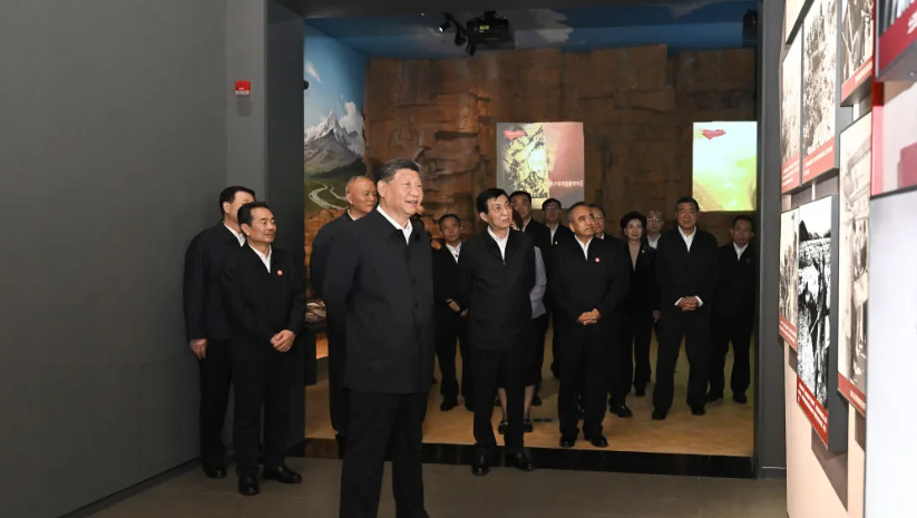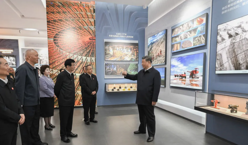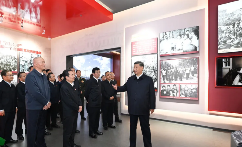 24日上午,习近平总书记在乌鲁木齐文化中心展览馆参观新疆维吾尔自治区成立70周年主题成就展。