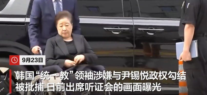 9月23日,韩国“统一教”领袖涉嫌与尹锡悦政权勾结被批捕,日前出席听证会的画面曝光。