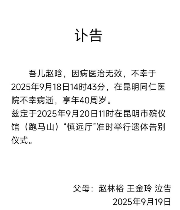 据媒体报道,知名连锁餐饮品牌云海肴联合创始人、董事长赵晗因突发心梗,经医治无效在9月18日于昆明同仁医院病逝,年仅40岁。