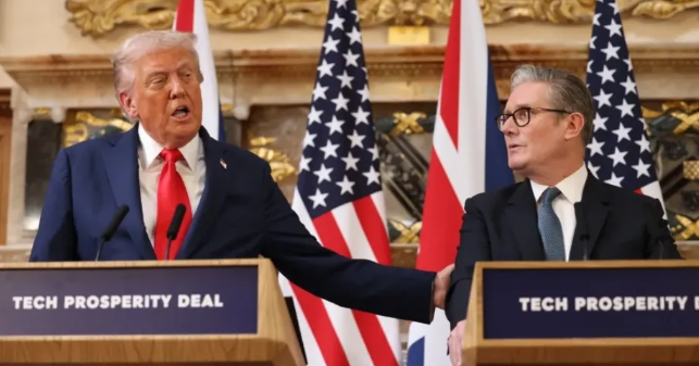 当地时间18日,英国首相斯塔默与来访的美国总统特朗普在英国首相乡村官邸契克斯别墅举行联合新闻发布会。