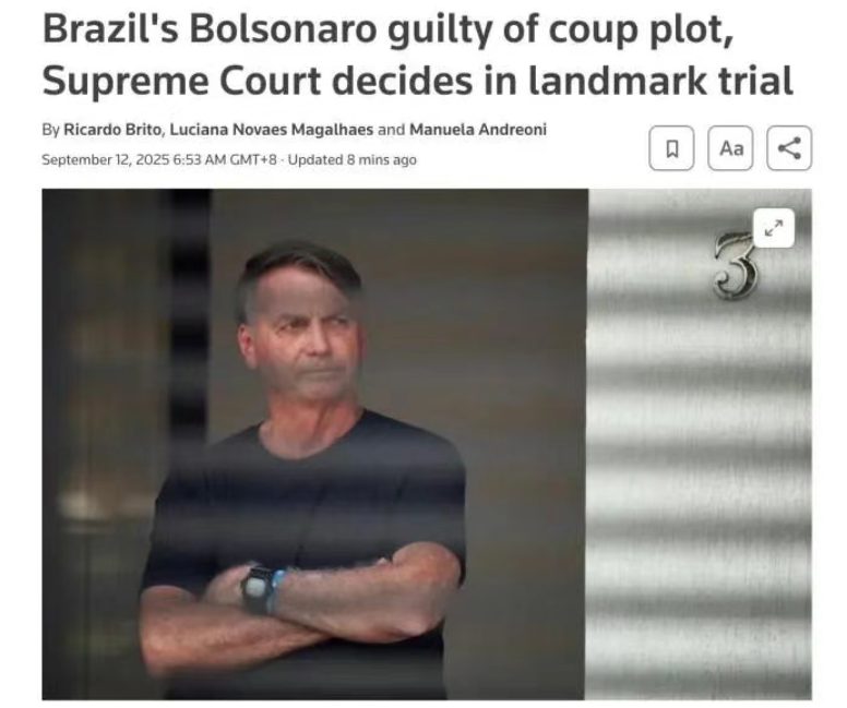 据报道,博索纳罗成为巴西历史上首位因策划政变而被定罪的前总统。