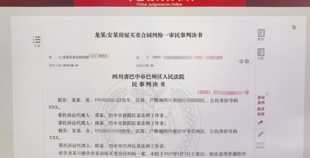 记者获悉,裁判文书网近期公布此房屋买卖合同纠纷一审判决书,巴中市巴州区人民法院判决,被告安某向原告龙某返还购房款12万元,并驳回龙某的其他诉讼请求。