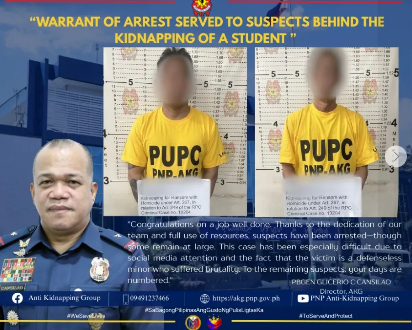 据菲律宾警方反绑架大队9月4日消息,菲律宾国家警察反绑架大队吕宋野战分队已于3日抓获了此前中国学生被剁指绑架案的另外两名嫌疑人。