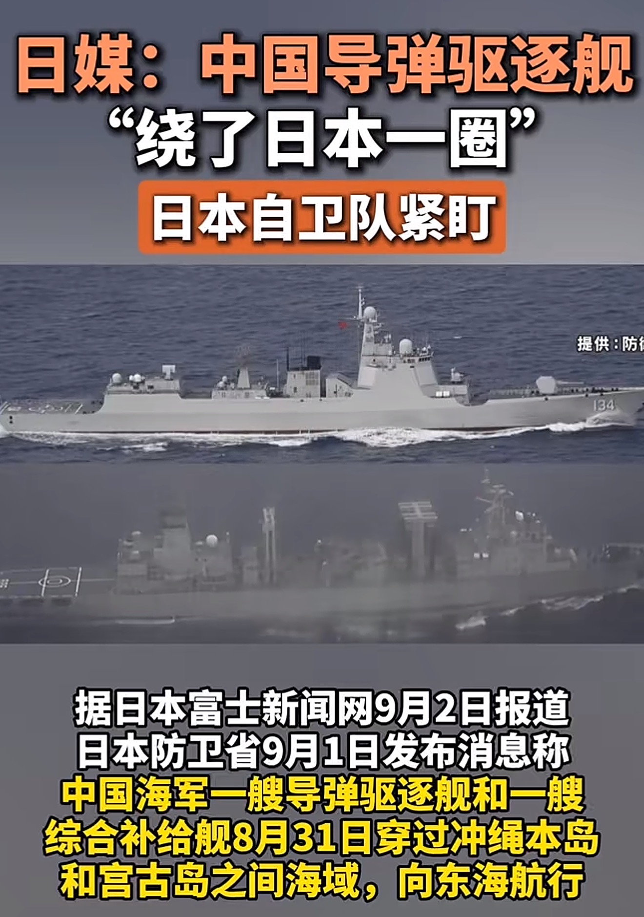 日媒:中国海军导弹驱逐舰“绕行日本列岛一圈”,日本自卫队紧盯
