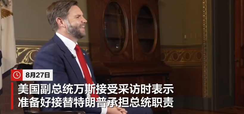8月27日,美国副总统万斯接受采访时表示准备好接替特朗普承担总统职责。