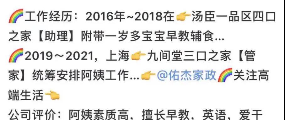 细心的网友可能也发现了,这位清华女生的工作经历中,有汤臣一品四口之家的家庭助理、九间堂三口之家的管家等。汤臣一品是上海著名的豪宅区,很多明星都住在那里;九间堂是上海著名的别墅区,一套独栋别墅动辄价格上亿。